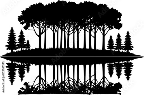 © T-Shop, Naklejka premium Silhouette Forest Reflection Vector Illustration for Nature Themes