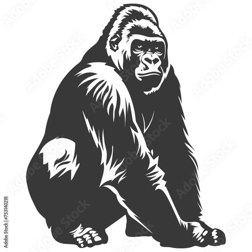 © NikahGeh, Fototapeta premium Silhouette gorilla animal black color only full body