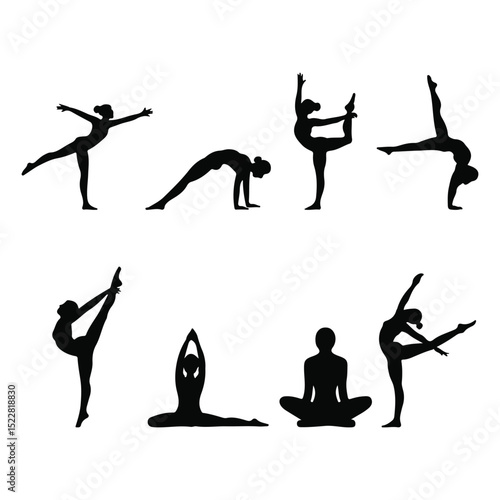 © KamrunNaher99, Fototapeta premium Silhouette Group of Sporty Woman Poses in Active Lifestyle on White Background