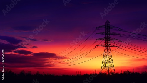 © KKK 999, Fototapeta premium Silhouette High voltage electric tower on sunset time and sky on sunset time background