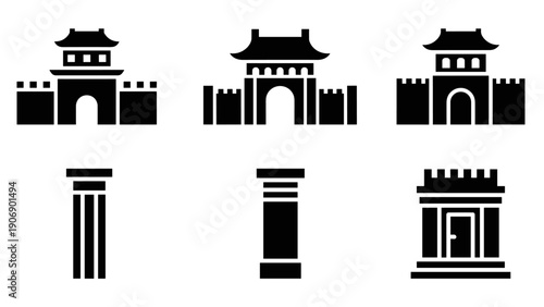 Obraz premium Silhouette icons of ancient temples and classical architecture elements