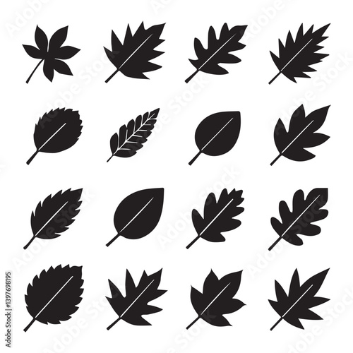 © MdShohag, Fototapeta premium silhouette icons of leaves in assorted styles, suitable for decorative nature-based artwork, prints, and digital projects.