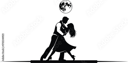 Obraz premium Silhouette illustration of a couple dancing under moonlight