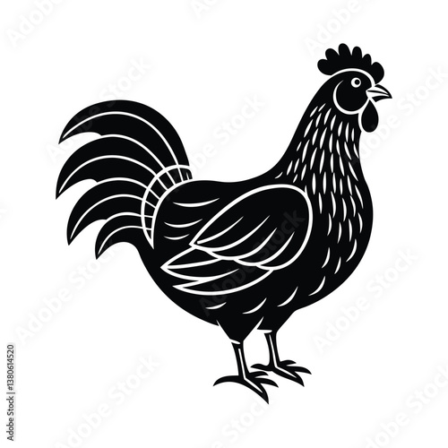 Fototapeta premium Silhouette Illustration of a Detailed Hen in Black and White