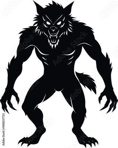 © Crazy Dreamy Boy, Obraz premium Silhouette Illustration of a Werewolf With Fierce Expression and Sharp Claws