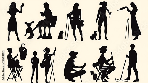 © Phan, Obraz premium Silhouette Illustrations: Women and Men Engaged in Daily Activities AI Generated