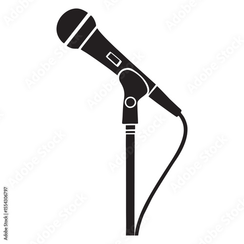 © yufamamiks, Obraz premium Silhouette image of microphone on white background