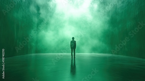 © Ali, Obraz premium Silhouette in green, foggy, spacious room.