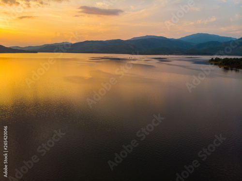 © themorningglory, Fototapeta premium Silhouette lake sunset with colourful sky cloud