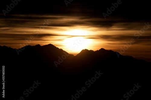 © Himalayan Gypsy, Obraz premium silhouette landscape view of sunrise over the mountains