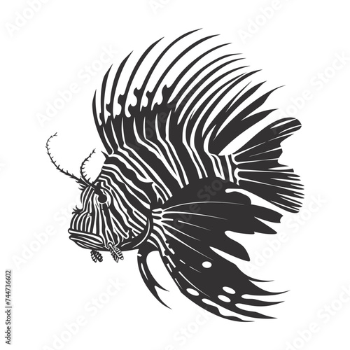 © NikahGeh, Obraz premium Silhouette lionfish black color only full body