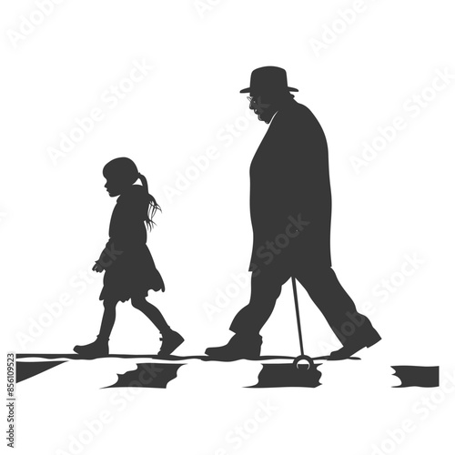 Obraz premium silhouette little girl helps the elderly man cross the street smartphone black color only