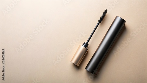 Naklejka premium Silhouette Mascara Tube Photography: High-Angle Flat Lay Product Shot,...