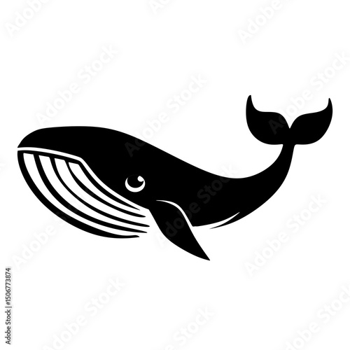Fototapeta premium Silhouette Minimalist Whale Marine Animal Black and White Ocean Creature...