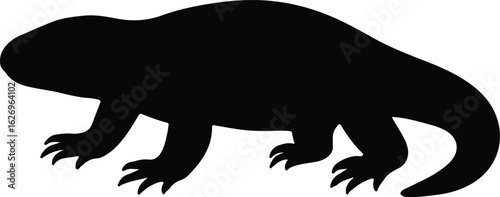 © Nasima, Fototapeta premium Silhouette Monitor lizard reptile animal black shape vector illustrator