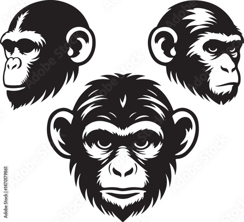 © Selimfreelancer, Fototapeta premium Silhouette monkey heads vector