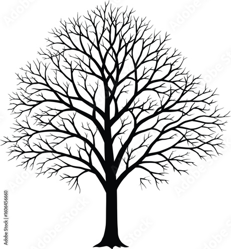 © Pvect02, Obraz premium Silhouette of a Bare Tree with Branches Isolated on White Background Vector Illustration