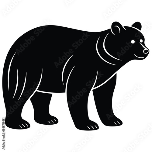 Fototapeta premium Silhouette of a Bear with two cubs following, bear silhouette illustration,...