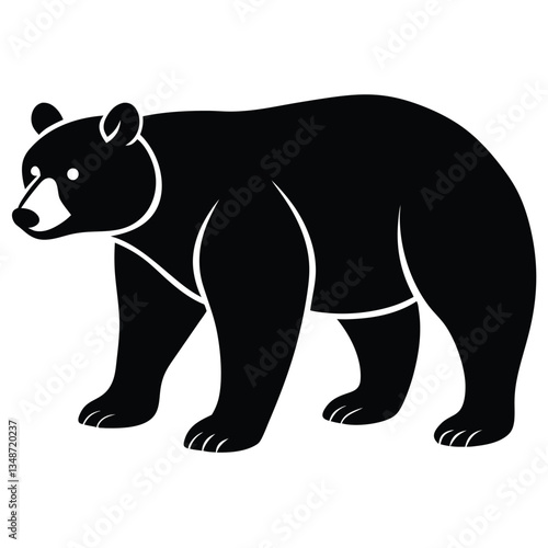 Fototapeta premium Silhouette of a Bear with two cubs following, bear silhouette illustration,...