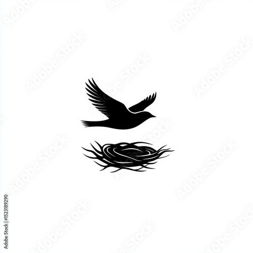 © CUNGKRING, Obraz premium Silhouette of a bird in flight above a nest (1)