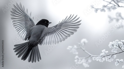© drizzlingstarsstudio, Naklejka premium Silhouette of a Bird in Flight with Intricate Feather Details