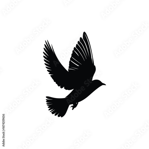 © VirtuosoArt, Fototapeta premium Silhouette of a bird in flight with wings spread against a white background in a simple vector style