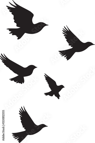 © Nazia, Obraz premium Silhouette of a birds flying in sky vector silhouette
