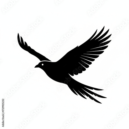 © MDRASELMIA, Fototapeta premium Silhouette of a black bird in flight with outstretched wings and long tail feathers