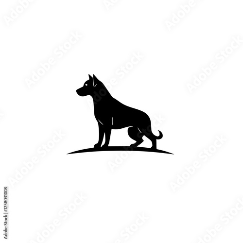 © MatandSterre, Obraz premium Silhouette of a black dog standing on a tiny mound of grass, looking left.