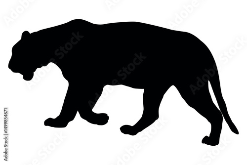 © Adopik, Naklejka premium Silhouette of a black panther walking with its mouth open on a white background
