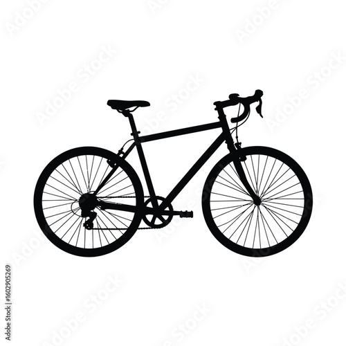 © MdSojib, Obraz premium Silhouette of a black road bicycle on a white background