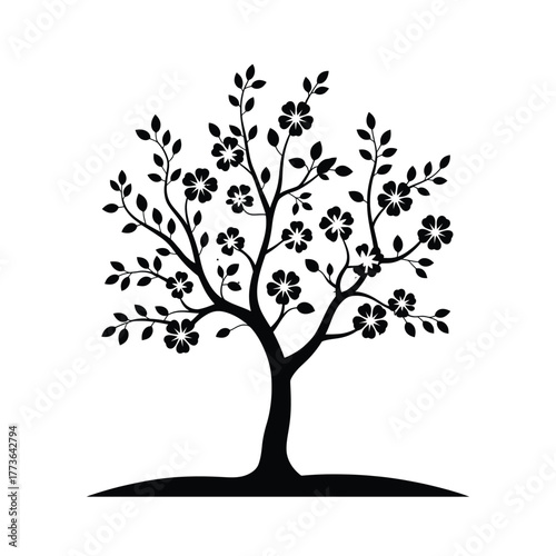 © AFAZ, Fototapeta premium Silhouette of a blooming cherry blossom tree with delicate flowers