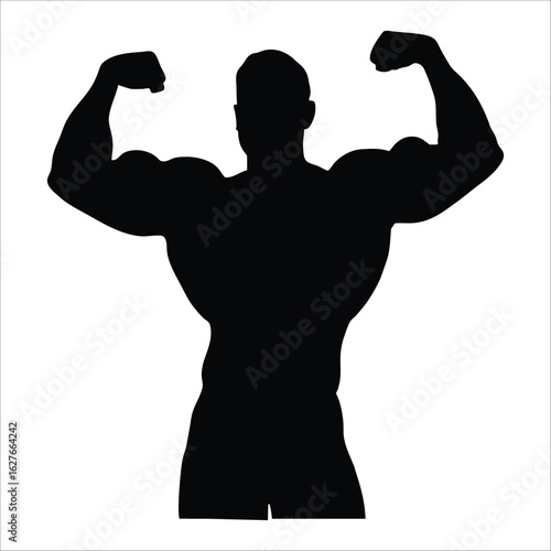 © shahriar, Fototapeta premium Silhouette of a Bodybuilder Flexing Arms