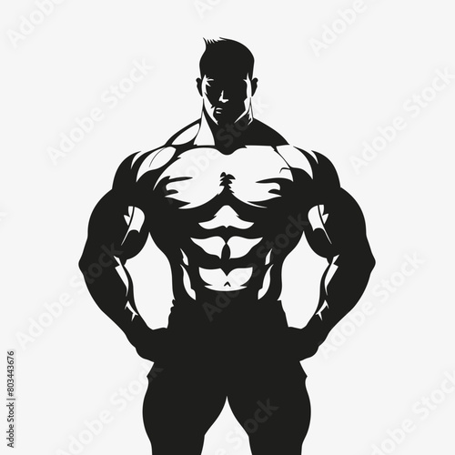 © Dzmitry, Fototapeta premium silhouette of a bodybuilder on a white background. Generative AI