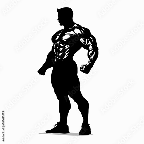 © Dzmitry, Fototapeta premium silhouette of a bodybuilder on a white background. Generative AI