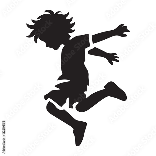 Naklejka premium Silhouette of a Boy Joyfully Leaping in the Air