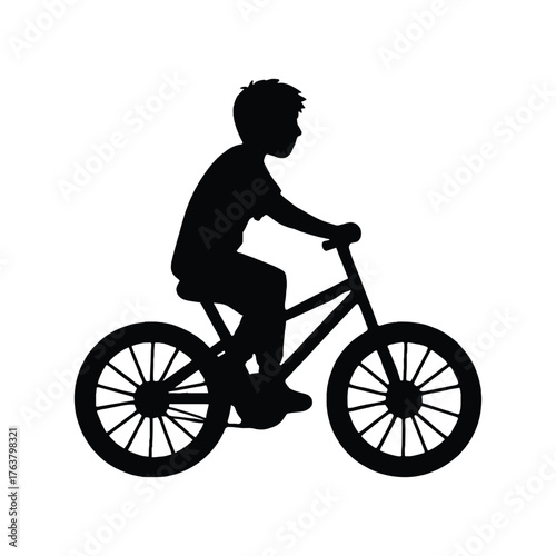 Obraz premium Silhouette of a Boy Riding a Bicycle, vector child cycling outdoors