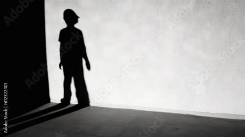 © AS Photo Family, Obraz premium Silhouette of a boy shadow in front of a wall. Generative AI.