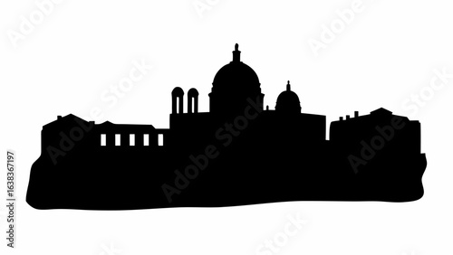 Fototapeta premium Silhouette of a building with domes and windows against a white background showcasing architectural design | editable eps vectors