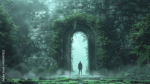 © pattozher, Fototapeta premium silhouette of a businessman walking through the big door