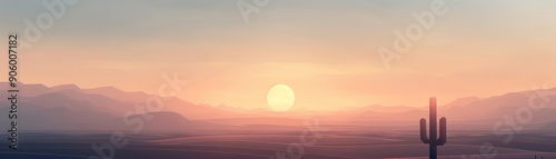 © narak0rn, Fototapeta premium Silhouette of a cactus against a hazy sunset in a desert landscape.