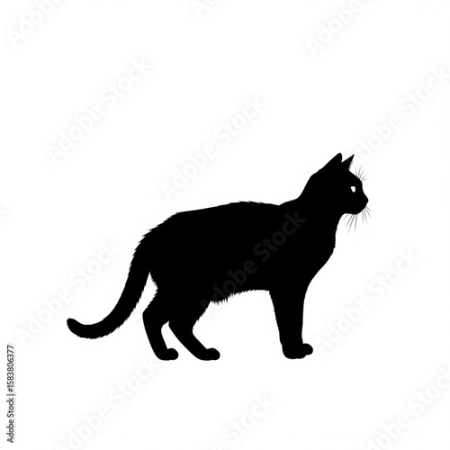 © Crafter Hub, Obraz premium Silhouette of a cat standing on a white background