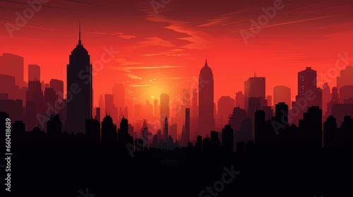 Naklejka premium Silhouette of a city full of skyscrapers, AI generated Image