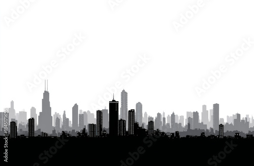 Naklejka premium Silhouette of a city skyline in shades of gray with skyscrapers and high-rise buildings
