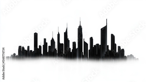 © Anisah, Naklejka premium Silhouette of a Cityscape Against a Clear White Background with Fog