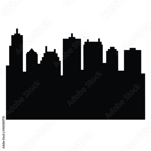 Naklejka premium Silhouette of a Cityscape at Night with Various Shaped Buildings, A Black Image