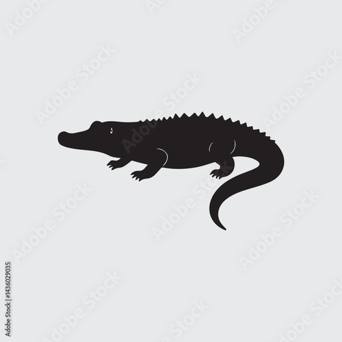 © . Logo, Fototapeta premium Silhouette of a Crocodile vector illustration art, isolated on a white background.