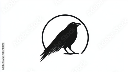 © lestari, Obraz premium Silhouette of a crow in a circle, perched with its head looking forward, for logos