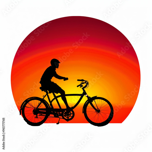 © GrayAza, Fototapeta premium Silhouette of a Cyclist Against a Vibrant Orange Sunset
