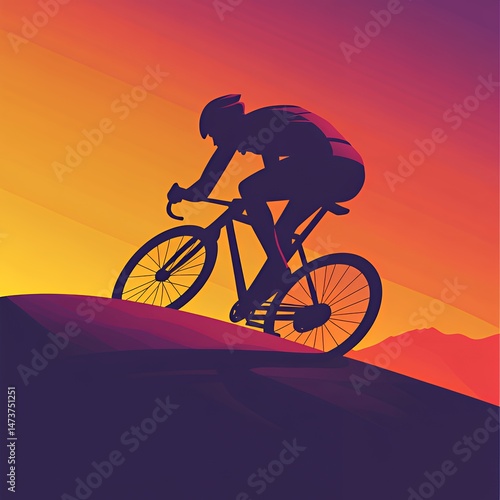 © Ben Kuang, Obraz premium Silhouette of a cyclist conquering a hill at sunset.